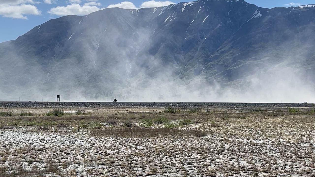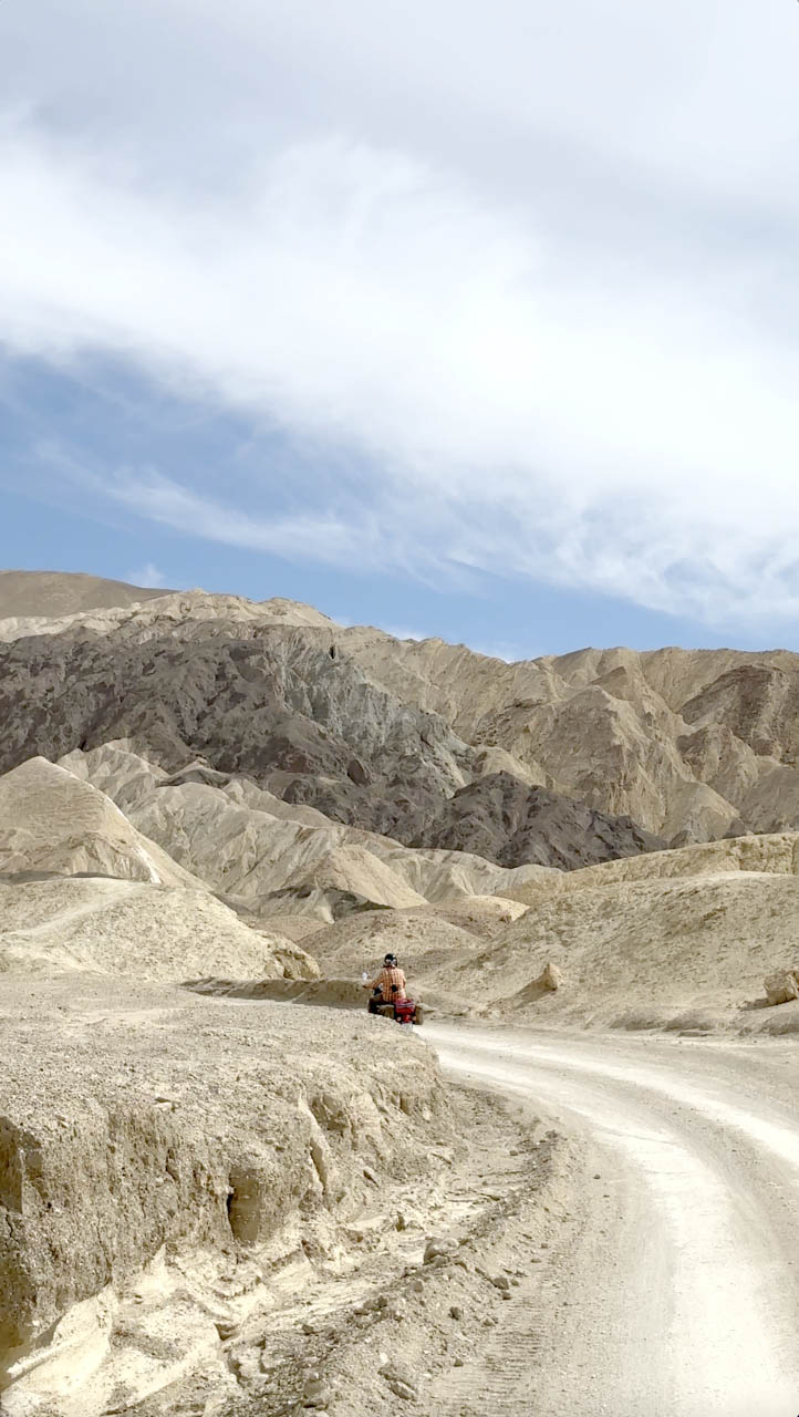 We had to reroute due to snow, doubling the distance, but the ride was gorgeous. The first stop came early: Rainbow Canyon. A famous Air Force training ground where jets scream past at ground level. The rest of the day reminded me of Patagonia: the emptiness, the wind, the mountains. The occasional Joshua Tree was the only clue we were still in California.