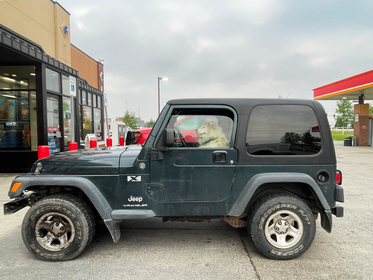 Finally, in a town called Olympia, we found a shop with the right tire… and a mechanic who refused to work on it. No time, no interest. We had no choice: we’d change it ourselves in the parking lot.