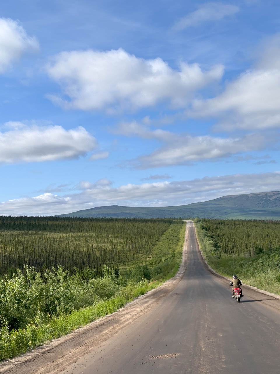 This stage feels like riding through a mirror. Every stretch echoes memories from Tierra del Fuego, but in reverse. It’s surreal to say it out loud: I’m heading toward the Arctic. The joy is real, but so is the fear. Each mile feels like air in an overinflated balloon, one breath away from bursting.