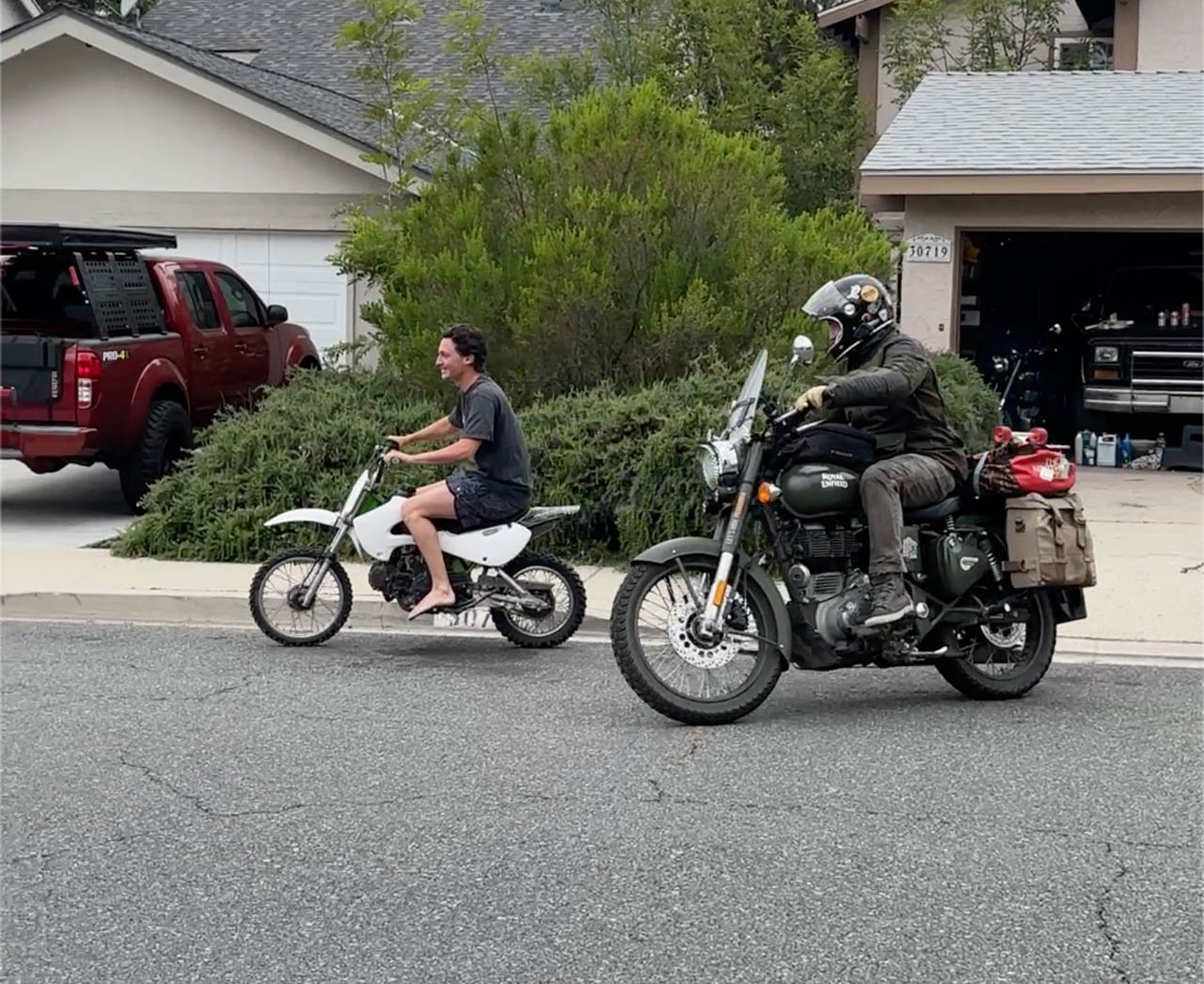Before hitting the road, there was a small electrical hiccup to fix, just a loose signal wire. Nothing serious. Then we warmed up through a loop on Mulholland Highway, that winding ribbon cutting across the hills to the ocean. A pit stop at Neptune’s Net gave us burgers with a side of Pacific breeze, just two Enfields parked out front: Frankie and my brother’s brand-new 350. Yes, he caught the bug and jumped into the adventure too.
