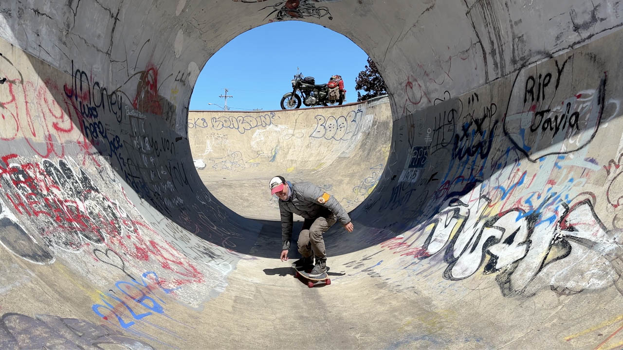 The next morning, nerves kicked in again, but I kept it mellow. Just 110 miles (178 kilometers) ahead, so we had time. Mate in hand, I started the engine and rolled into the Mojave, stopping at Charlie Brown Farms, a chaotic roadside shop full of absurd trinkets I didn’t need but obviously bought. The day’s ride took me past Mountain High, a ski resort where I once cracked my tailbone, and into the land of Joshua Trees.