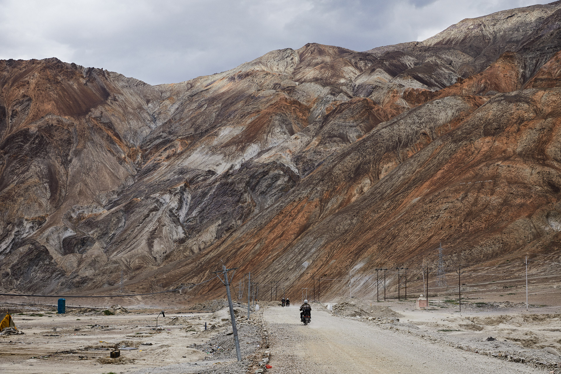 We get up at the crack of dawn and climb on our bikes at 7am for a long stretch of off-road riding on a broken and poorly maintained track. The morning light is magical, revealing shapes and contrasts.