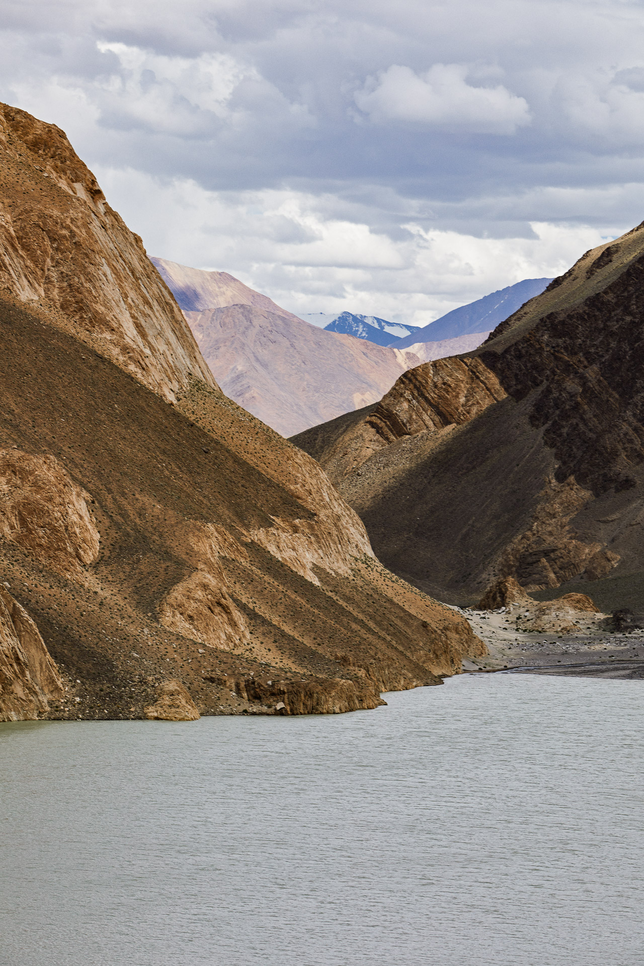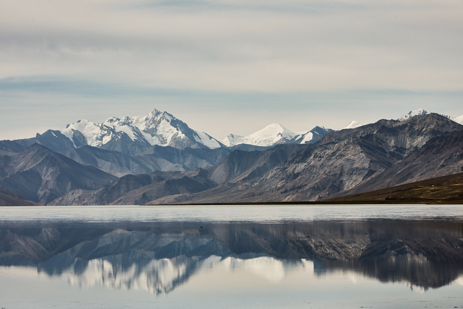 Its surface is absolutely glassy, without a ripple, and deep blue. The water is salty and contains soda. There is little or no life in it. The lake is just a few hundred meters wide, 138 km long and 328 m deep! It’s a real rift, probably a remnant of the ancient ocean that was the Himalayas 600 million years ago. It divides its banks between China and India.