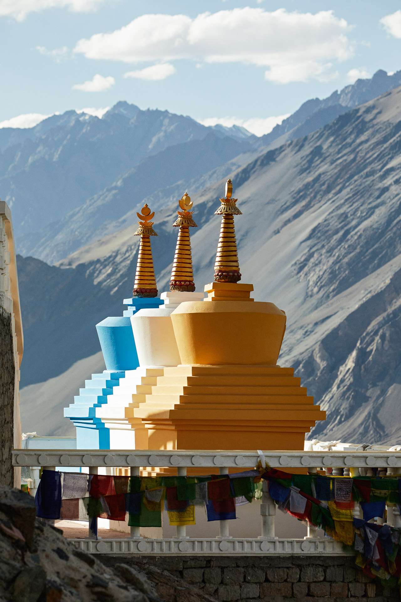 Our guides from the Indian agency, run by two solid Tibetan brothers, Dorge and Vijay, welcomed us with open arms and told us all about their country with passion. Always considerate, they give us sound advice on how to combat the altitude sickness that is already making itself felt at 3500 m.