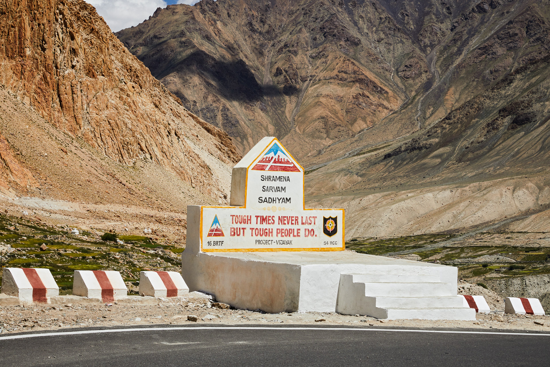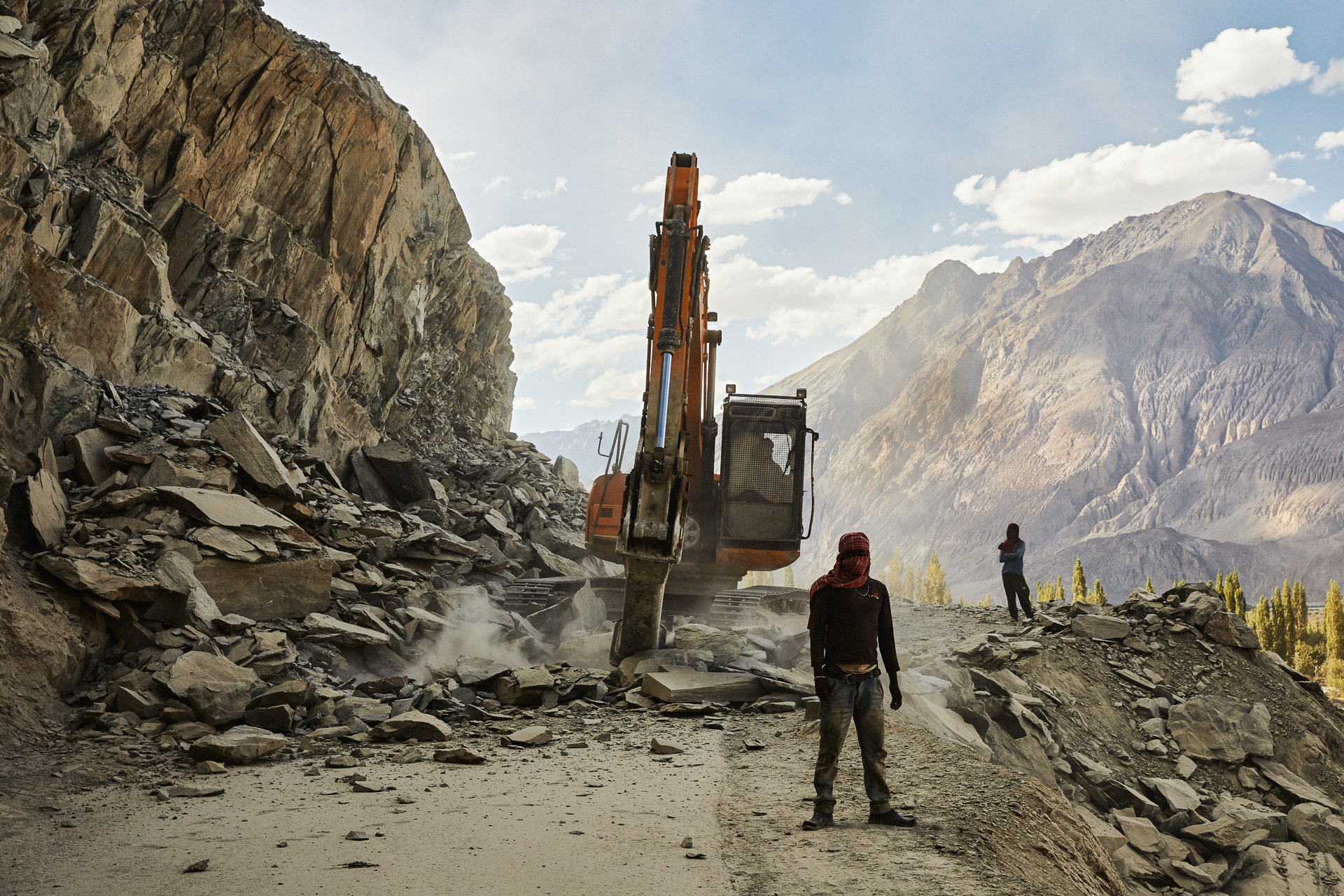 Living in rudimentary tents by the roadside, the “Bihari” (inhabitants of the state of Bihar, north-east India) tirelessly build the roadway in precarious conditions for miserable pay. Hooded at all times to protect them from the dust, they live and work for BRO, the notorious Boarder Road Organization. Their working techniques sometimes seem improbable, but then, the notion of time can vary radically from one latitude of the planet to another.