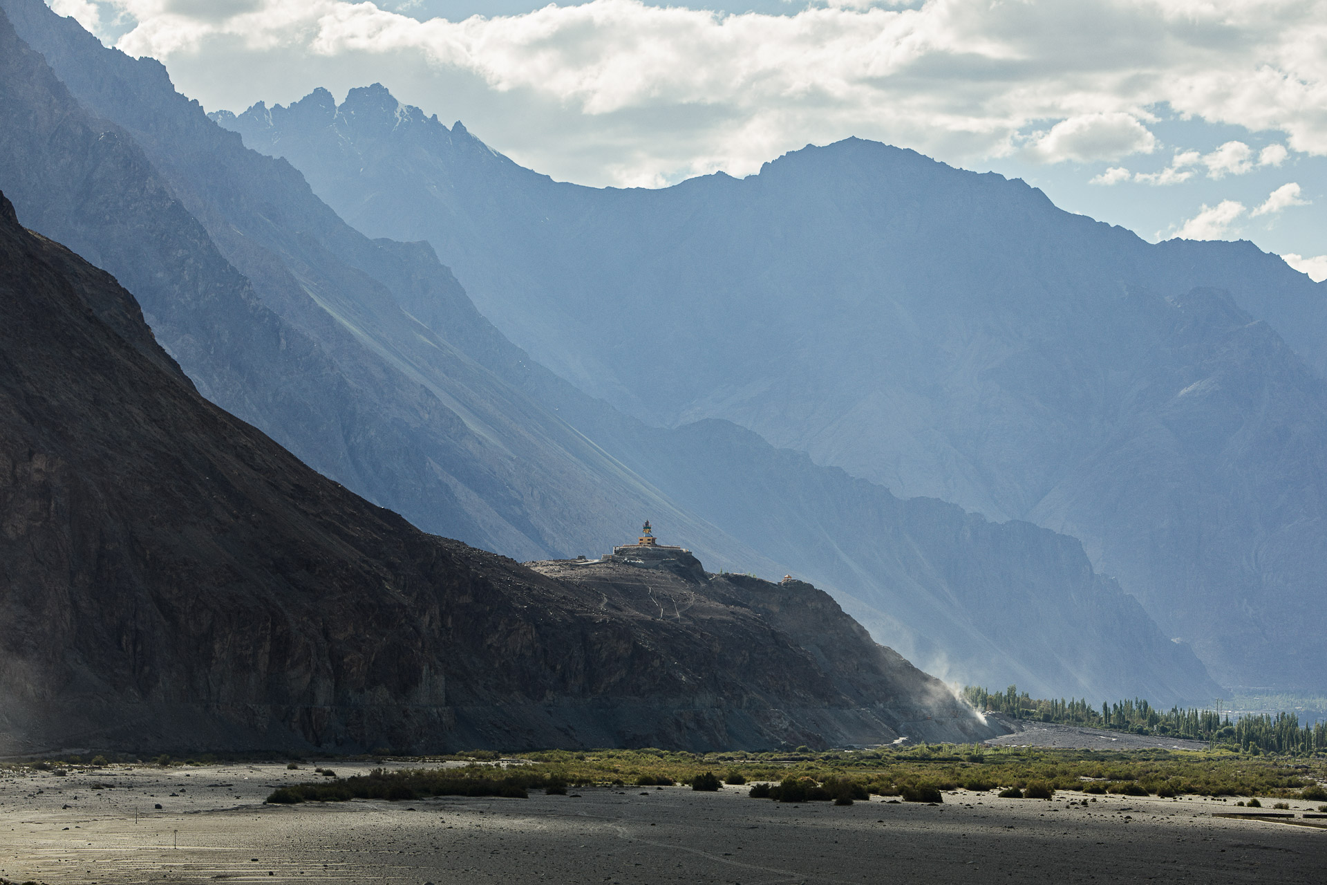 Anyway, we waited an hour and a half before finally turning back and setting off to explore more welcoming lands. Nothing was ever going to go according to plan! We visited a superb monastery clinging to the side of a cliff and the giant golden statue of “Maitreya Buddha” overlooking the Nubra.